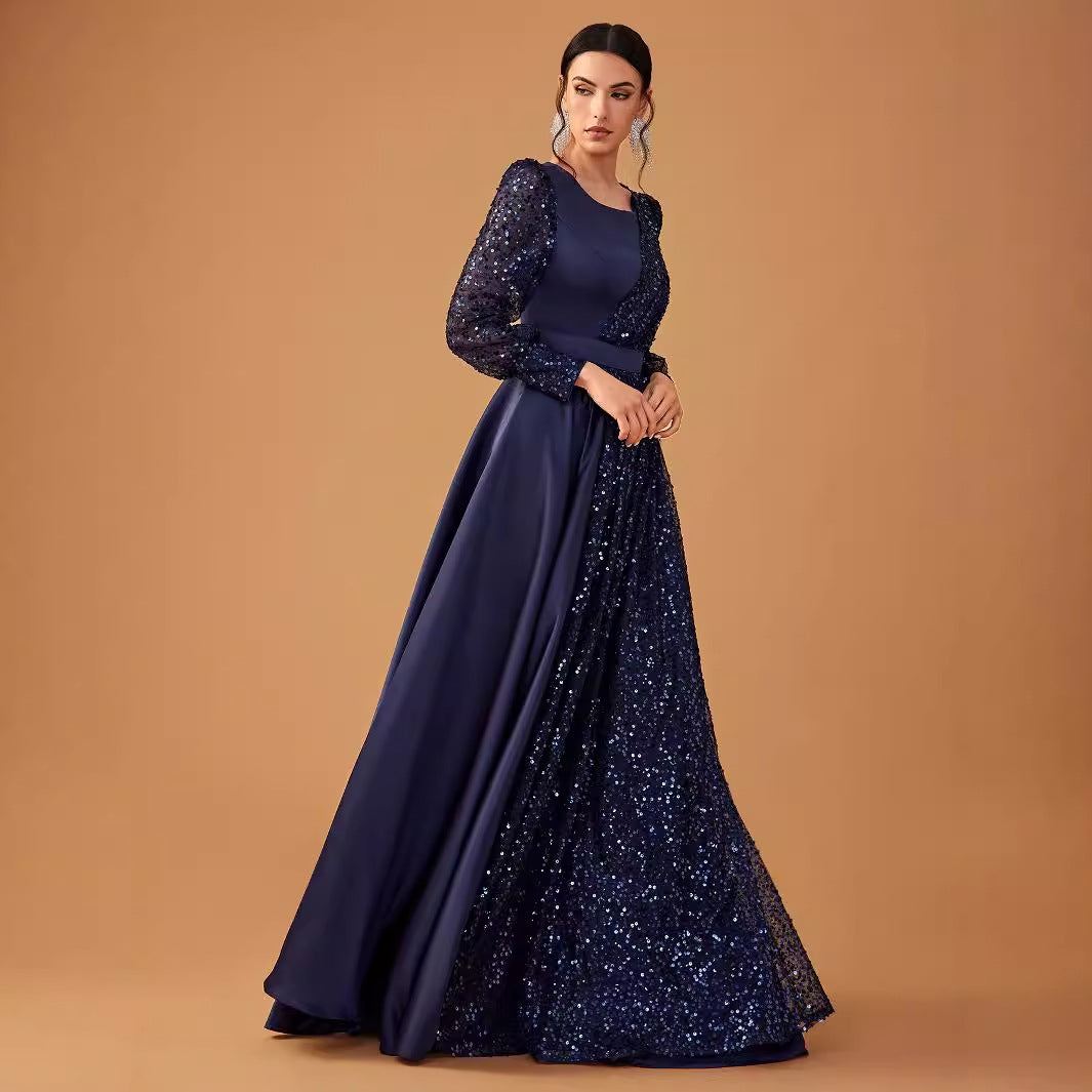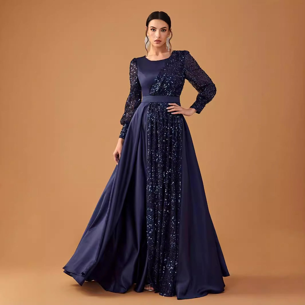 في الأمسيات والمناسبات الخاصة، يلفت هذا الفستان الأنظار بتصميمه الطويل وانسيابه الناعم مع تطريز لامع يمنح حضورًا جذابًا وإطلالة أنيقة. يجمع بين البساطة والرقي في قصة متوازنة تُبرز القوام بشكل جميل وتمنحك مظهرًا ملفتًا دون مبالغة.